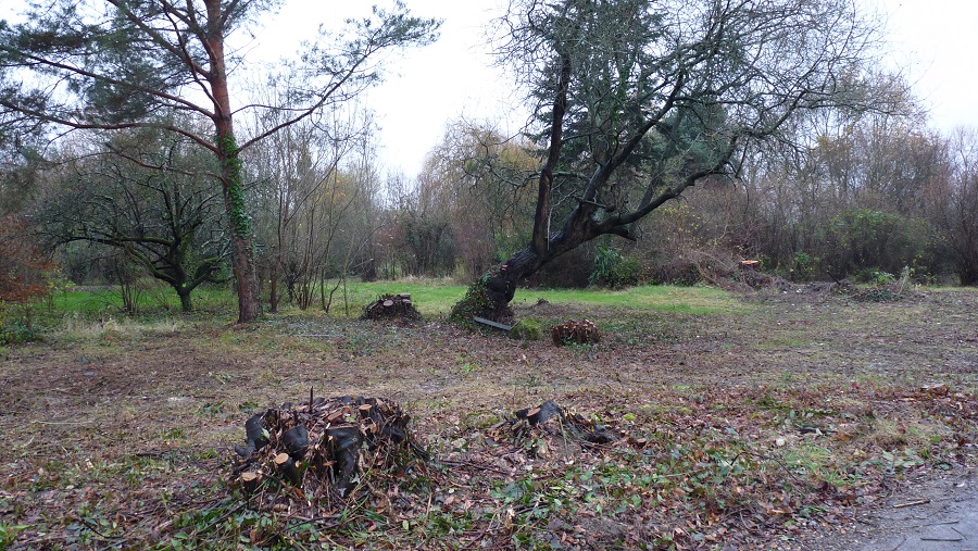 Pour les travaux faits, la ville a abattu environ 500 arbres et arbustes, dont tous ceux qui avaient été plantés lors de la restructuration de la zone en 2005, 2006.