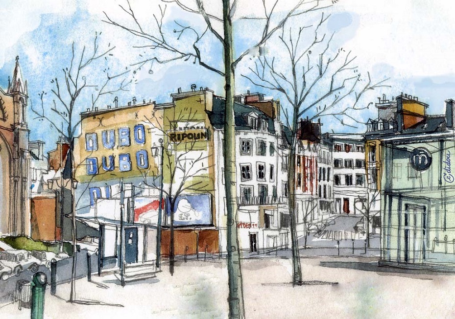 Croquis urbains, Dessins figuratifs à l’aquarelle et techniques mixtes. http://cdidou.tumblr.com/