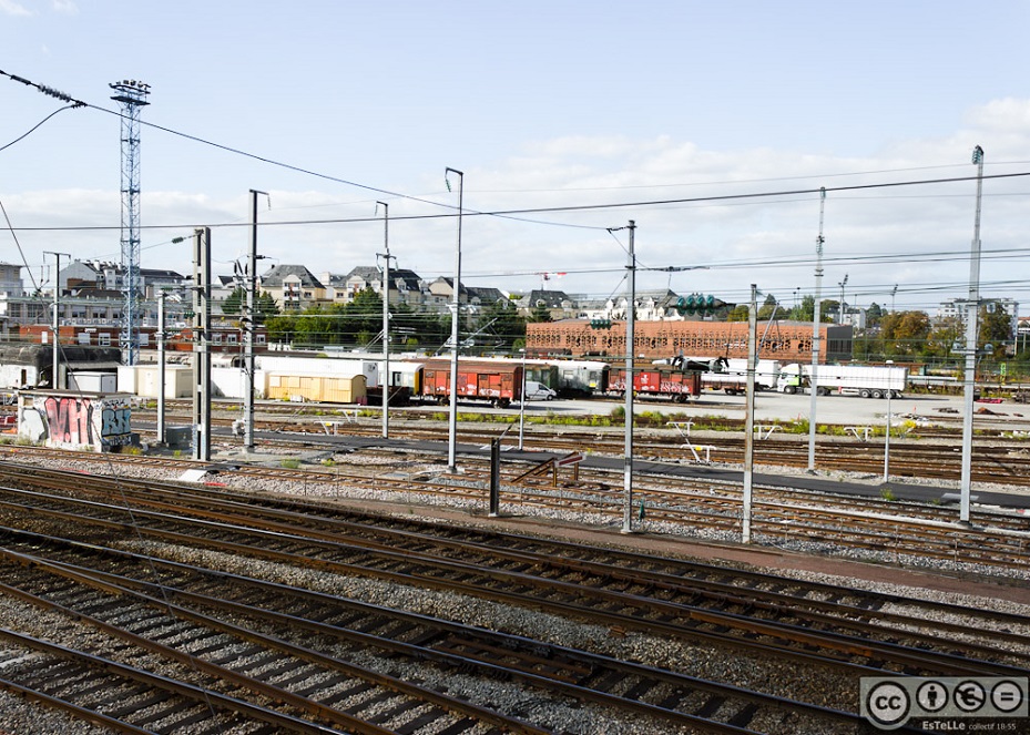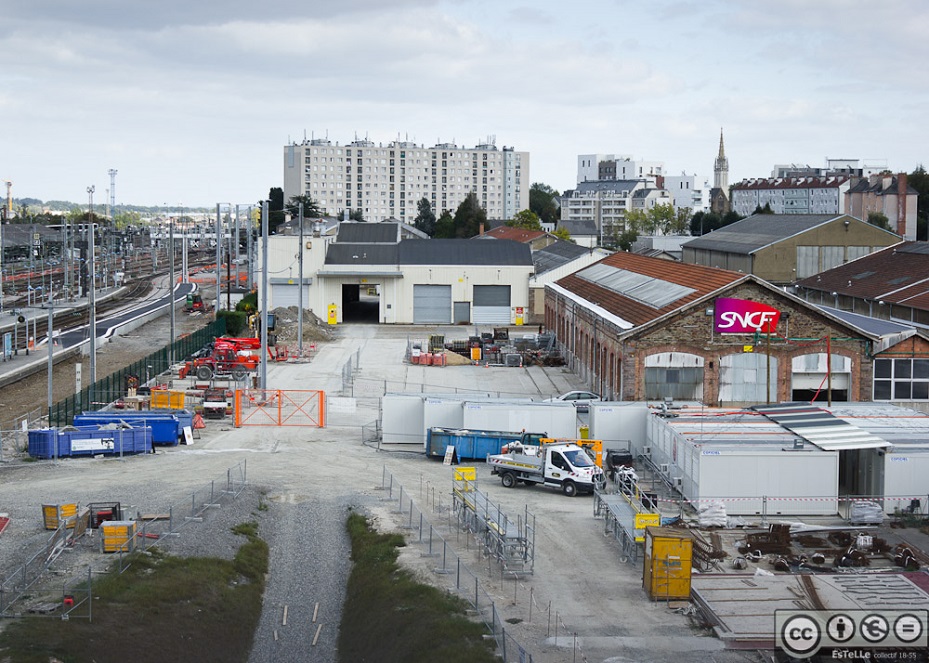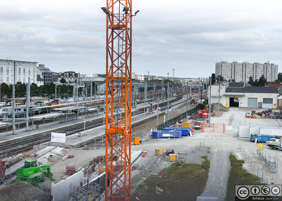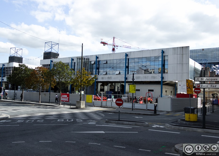 - La Gare telle qu’elle a été modifiée et reconstruite par le Cabinet Architecte Leberre à l’arrivée du TGV (entre 1990 et 1992) Derrière la palissades, travaux de construction de la Nouvelle Gare et de la Station métro Ligne B.