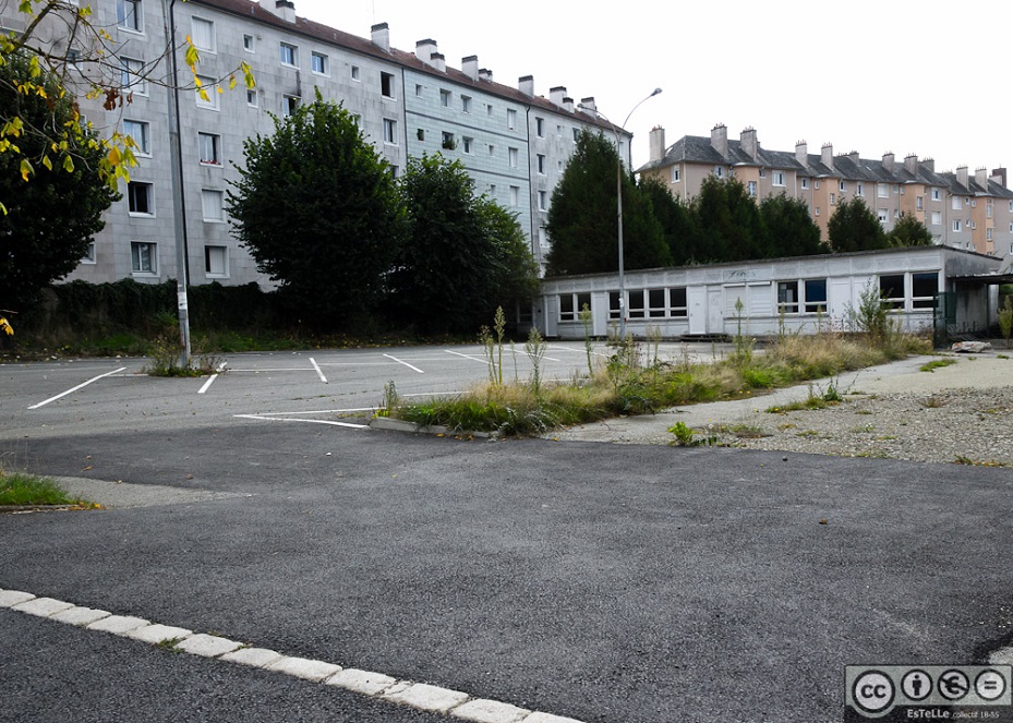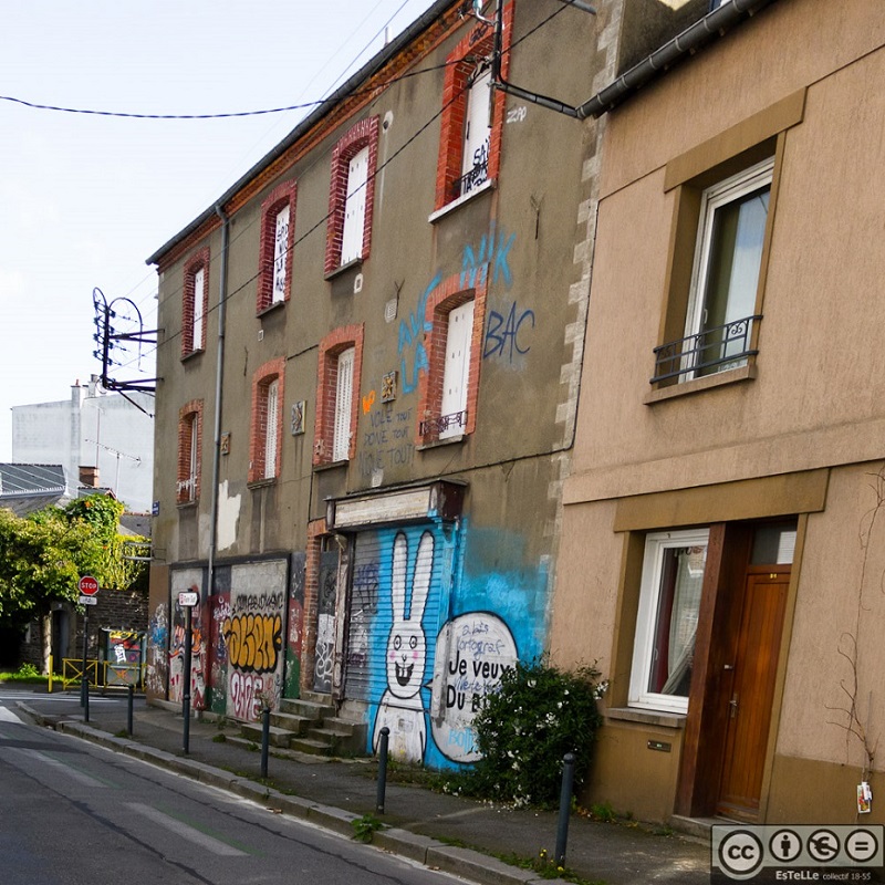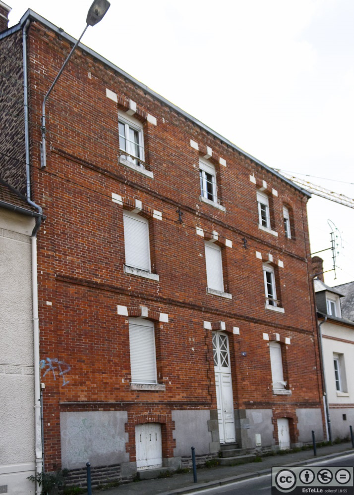 - Rue de Quineleu – Côté Sud – Immeuble en briques. Presque toutes les constructions du côté Nord de la rue de Quineleu ont été démolies. Les 2 immeubles restant en bout de rue sont condamnés à l’être.