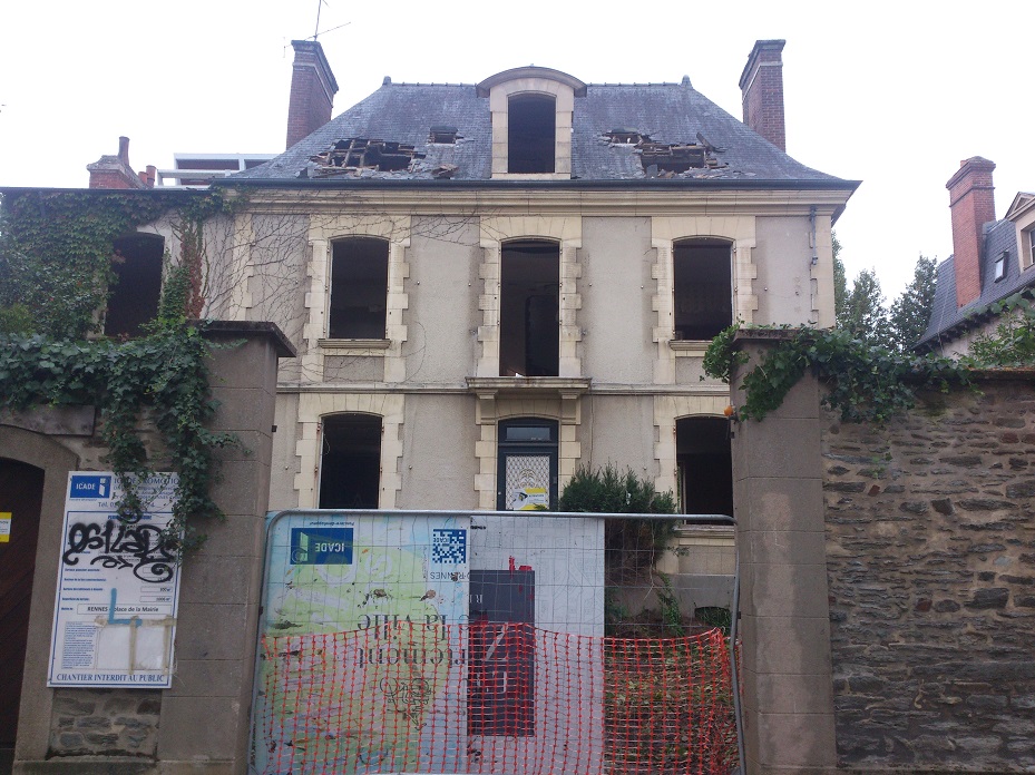 Nous venons de constater la démolition en cours de la très belle Maison Bourgeoise du 11 rue de Vincennes et nous désolons, toujours en vain, de voir partir une à une et plus rapidement que jamais, ces merveilles de l’architecture rennaise de fin XIX° – début XX° Siècle.